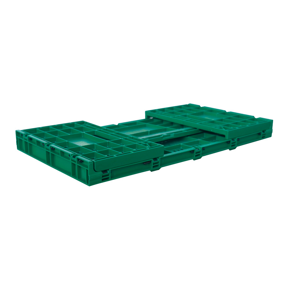 يعتمد الصندوق البلاستيكي القابل للطي المعايير الدولية ويتعاون مع منصة نقالة قياسية أوروبية من النوع 1210 أو النوع 1208 أو منصة نقالة قياسية يابانية من النوع T11، والتي يمكنها تحقيق المعالجة الآلية، وتحسين كفاءة الدوران، والتحكم في معدل تلف البضائع؛ يمكن استخدامه أيضًا مع عربات السلحفاة للتكديس والتحريك.